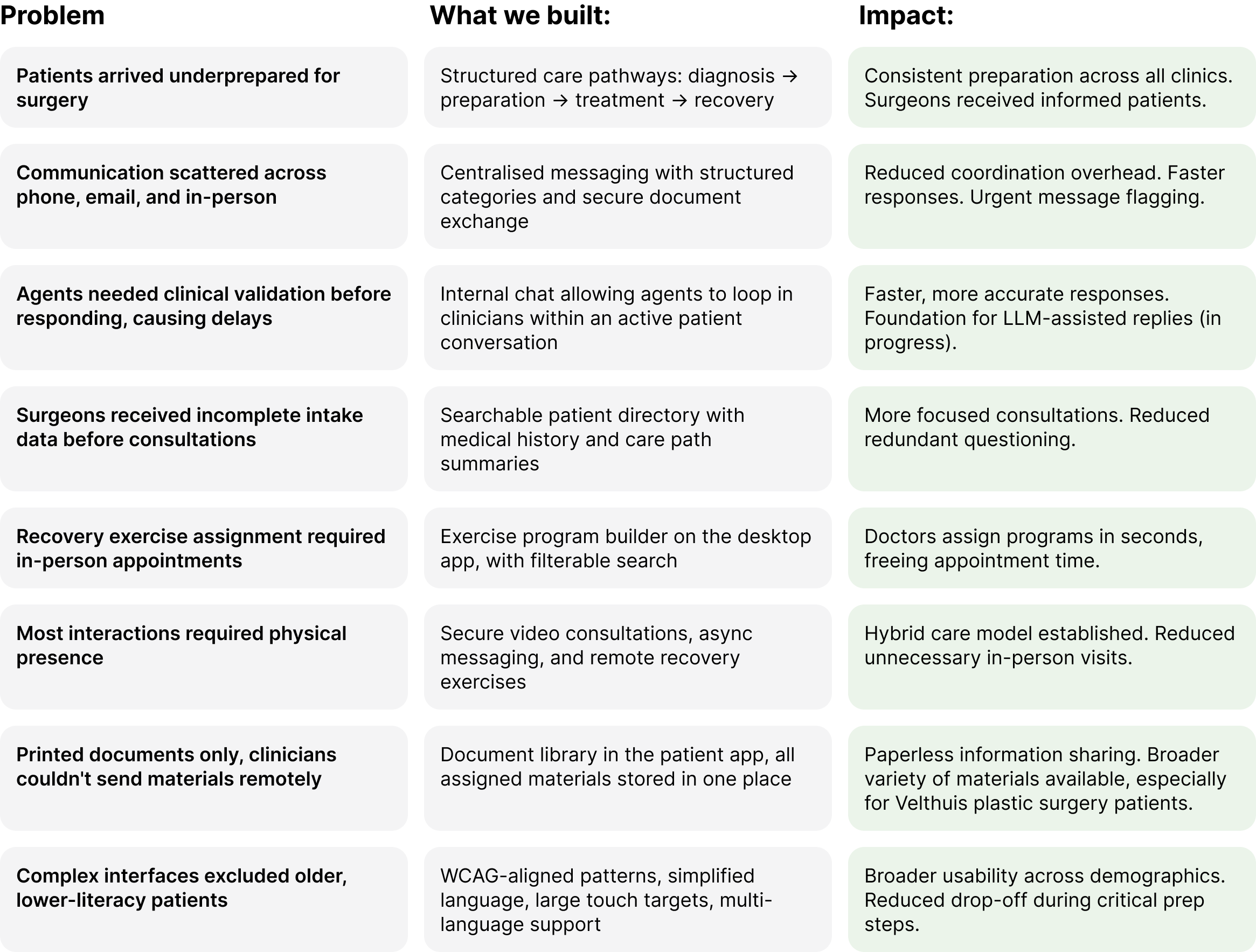 Design a secure, accessible digital platform that supports patients before and after surgery while integrating seamlessly into clinic workflows.