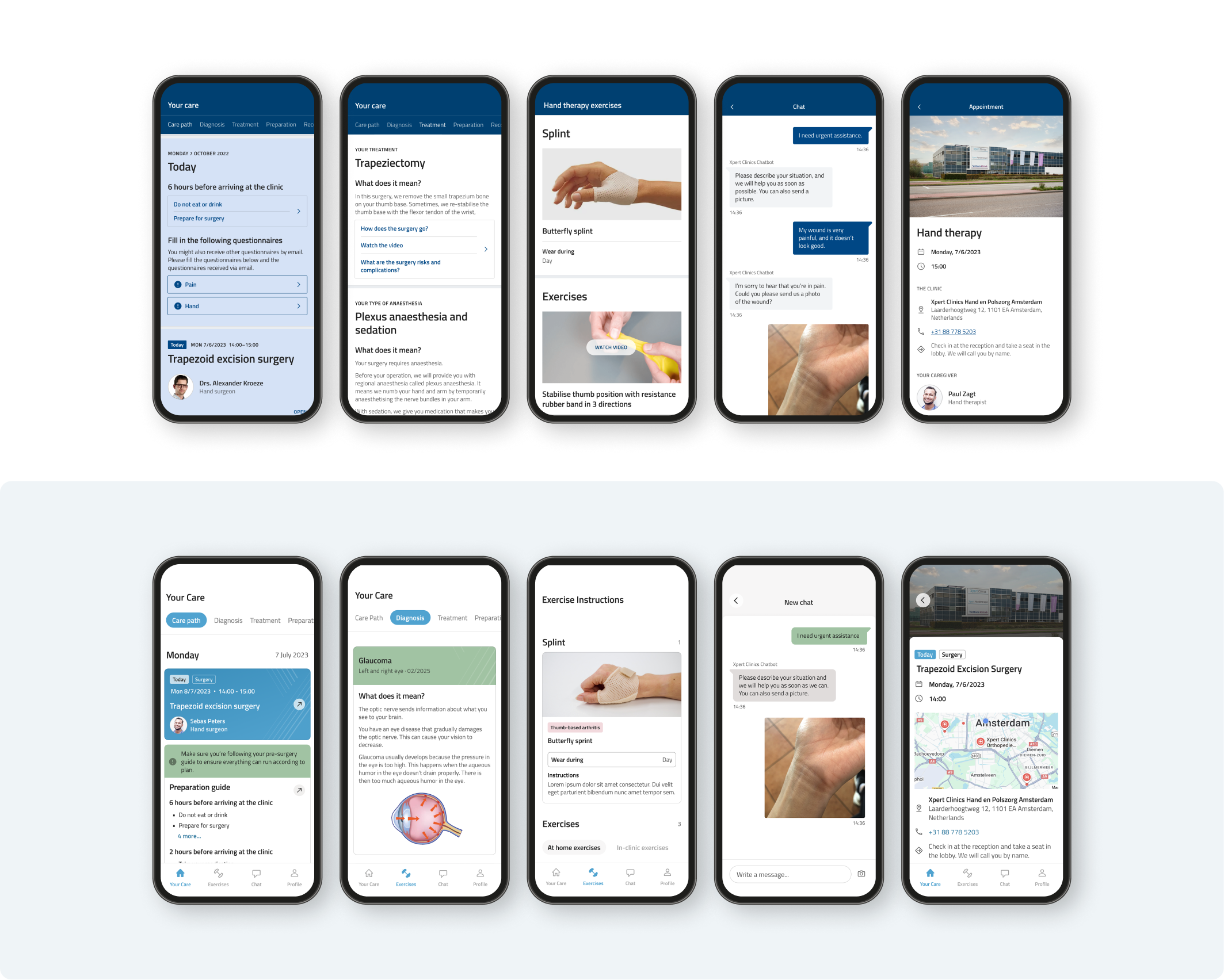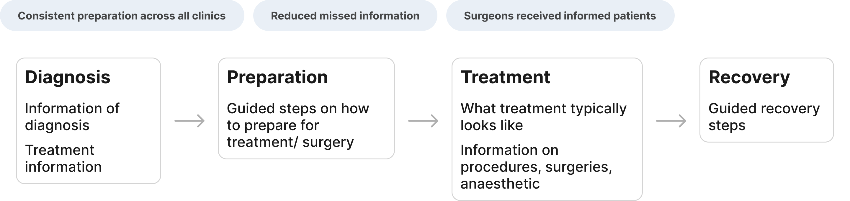 Before designing features, I focused on understanding clinical workflows and patient anxieties around surgery and clinical procedures. Due to regulatory and operational constraints within clinical environments, formal user research opportunities were limited during early phases.