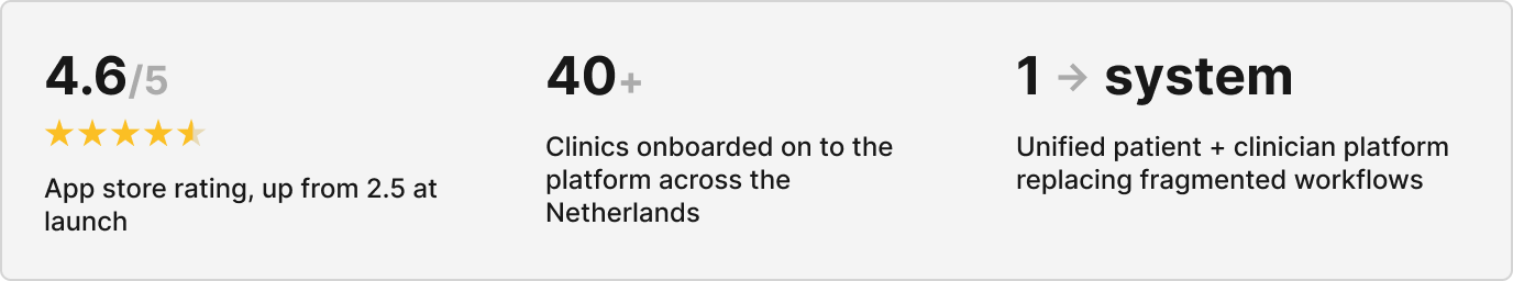 💡 The shift from "app" to "system" was significant. This wasn't a product problem, it was an infrastructure problem. Both sides of the clinical relationship needed to be designed simultaneously.