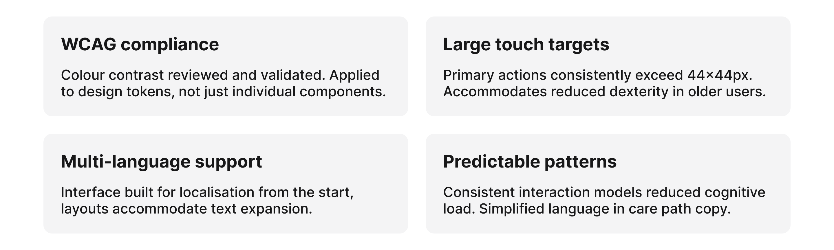 Embedding inclusive design principles into the token system and component library from the start meant accessibility scaled with the product, not against it.